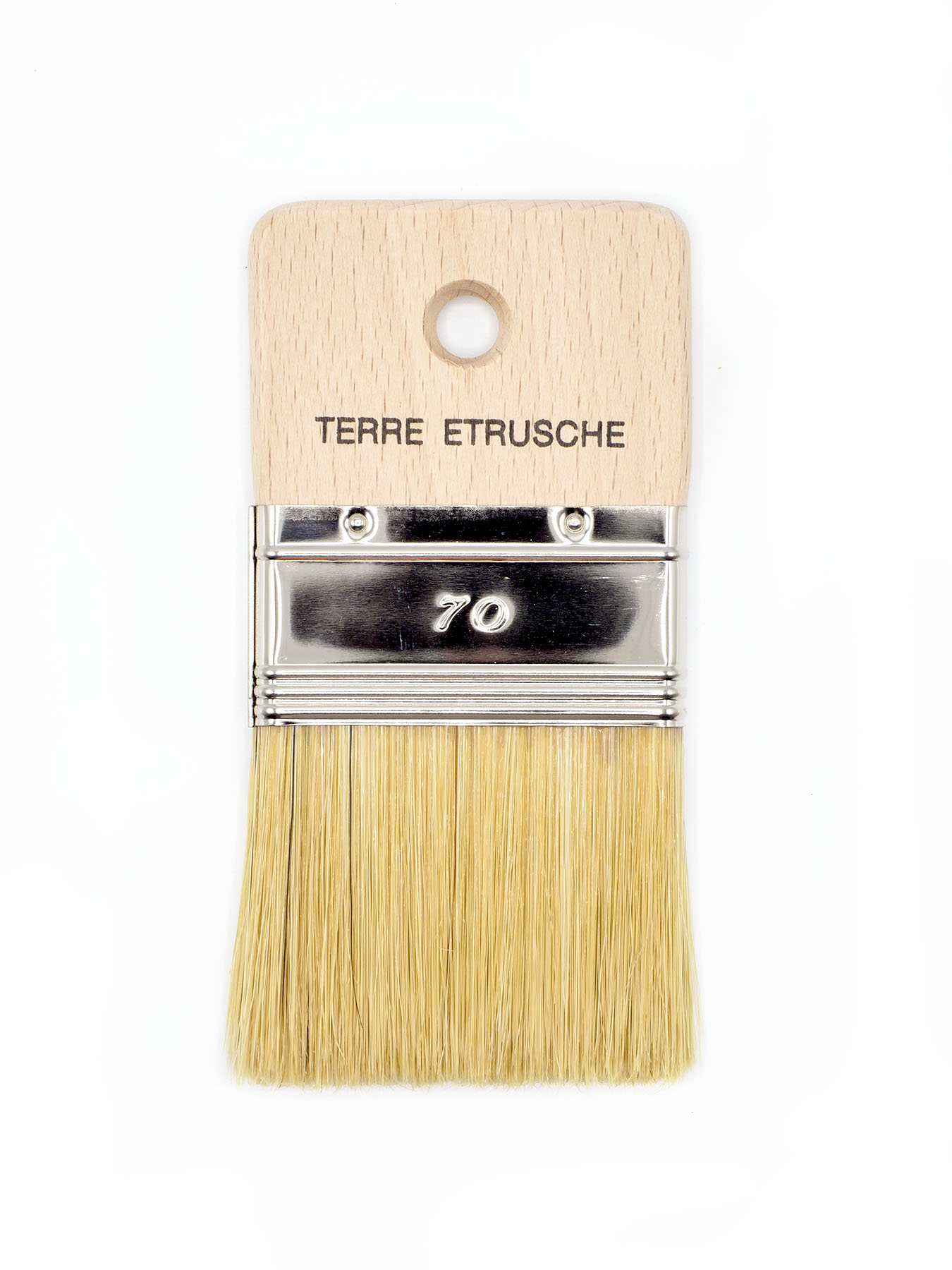 Pennello corto setola naturale manico legno a spatola per applicazione di pitture decorative murali con effetto velatura.